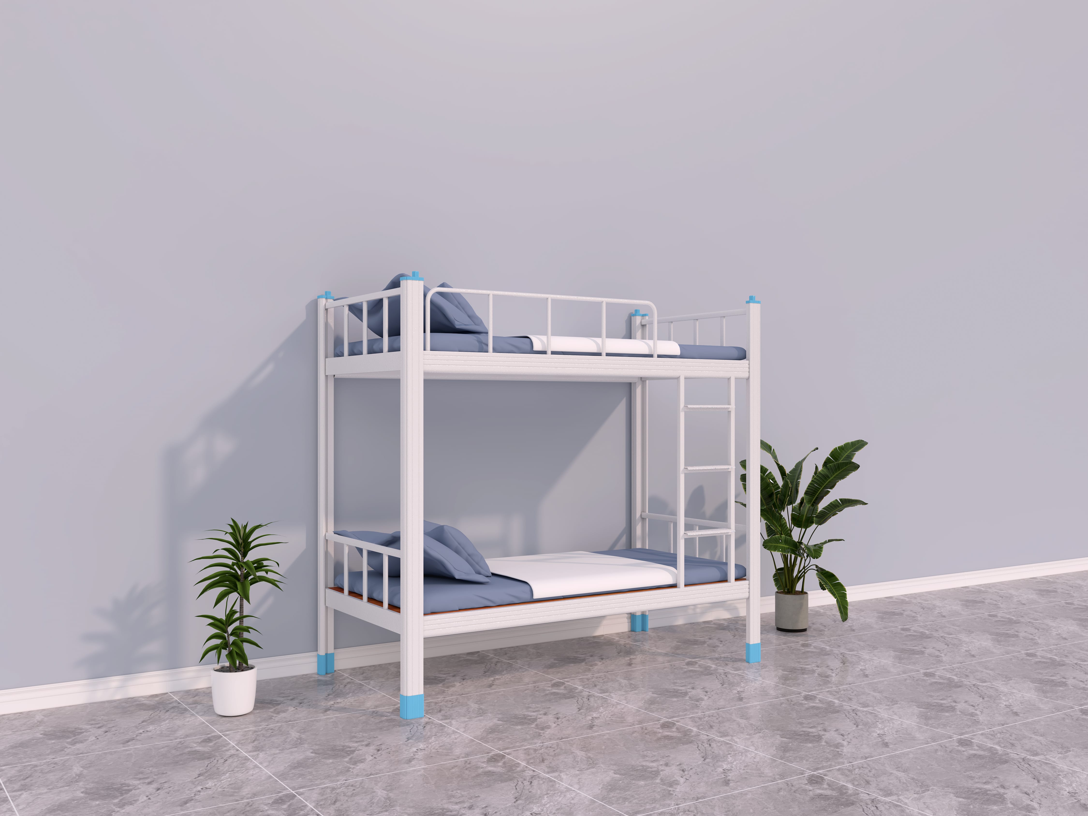 高度:宿舍大概在2.5米至3米之間,所以上下鐵鋪床高度一定要注意,宿舍床過高,上鋪員工睡覺或者活動時容易碰到天花板,過低時在下鋪拿東西會直立不起腰或者直接撞到梁上,普通設計高度為1800mm就可以了。