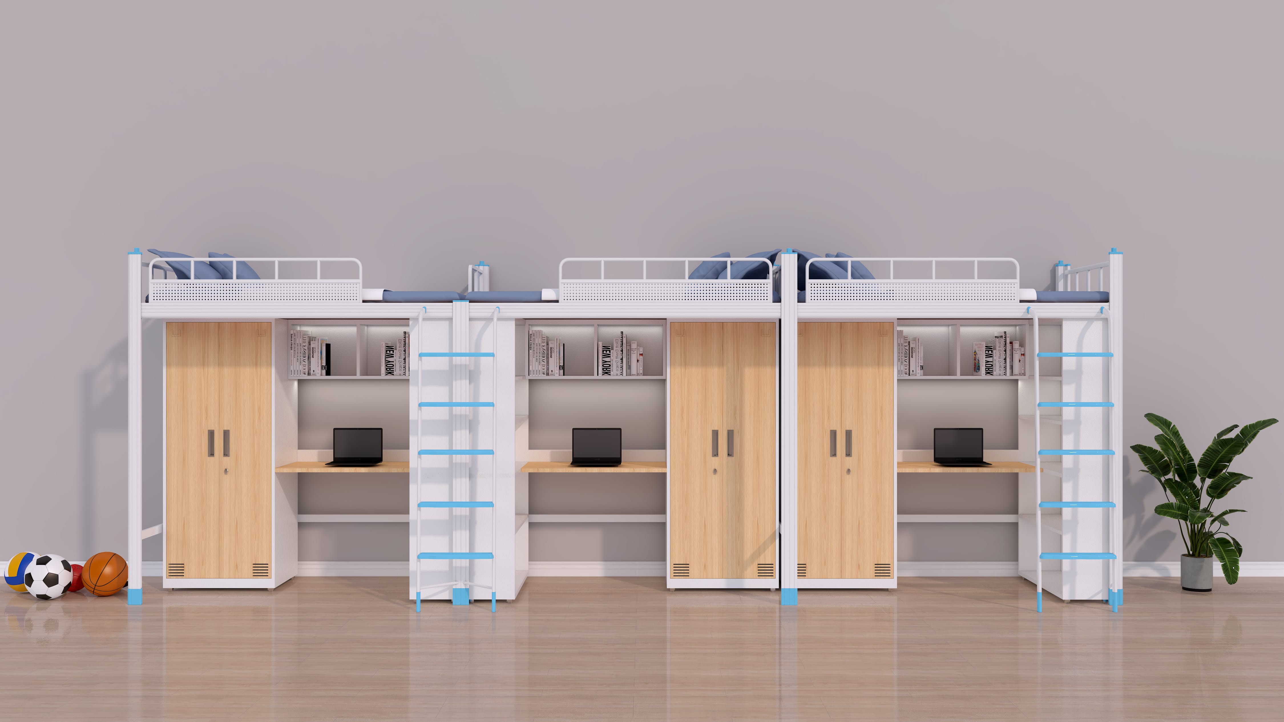以其自然、環(huán)保的特點受到青睞,通常配有書架、儲物柜等附加設施,適合對環(huán)保和實用性有較高要求的同學。